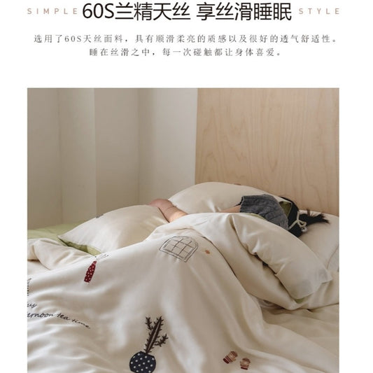 「四件套」80支天丝时尚刺绣·下午茶-松绿