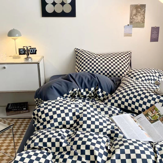 「四件套」文艺复古风·经典棋盘黑白小格子