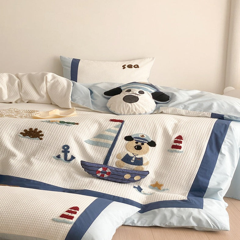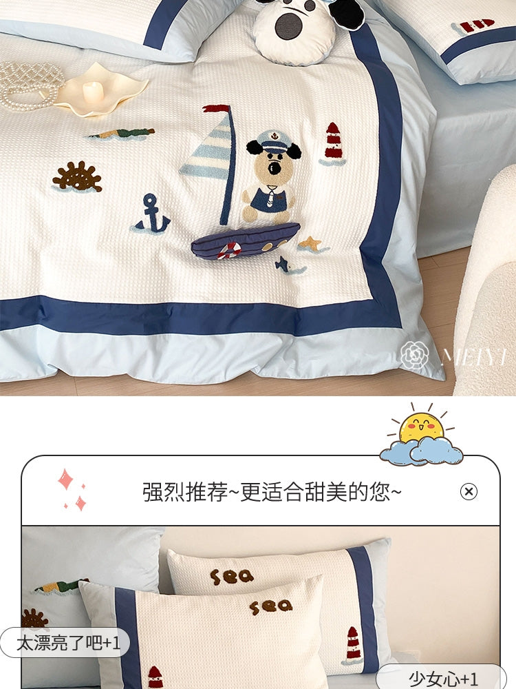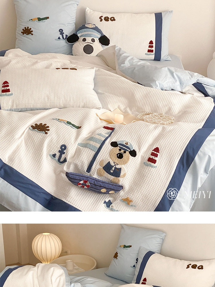 纯棉华夫格水洗棉刺绣被套全棉床单儿童房床上用品