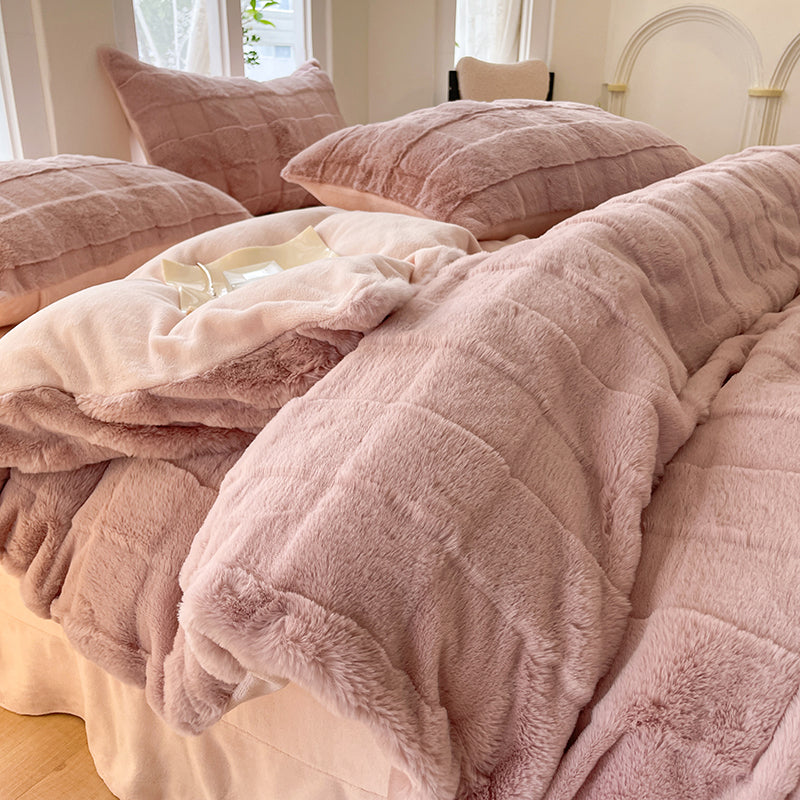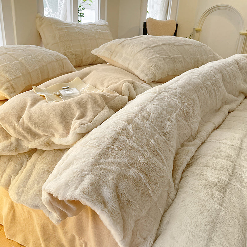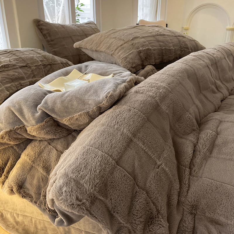 「四件套」 2023新款加厚立体方格兔毛绒保暖