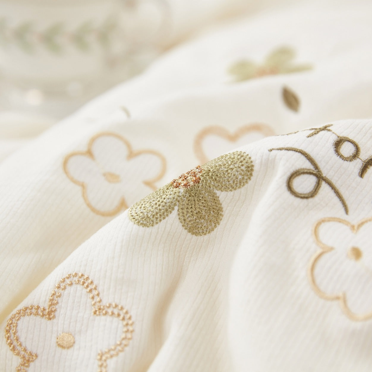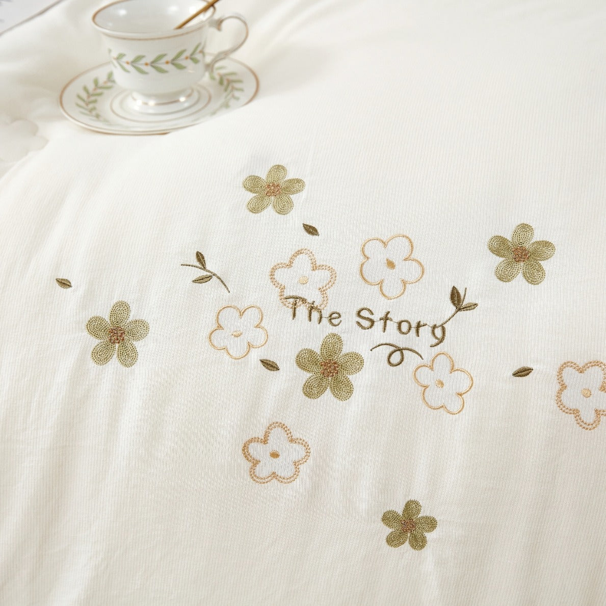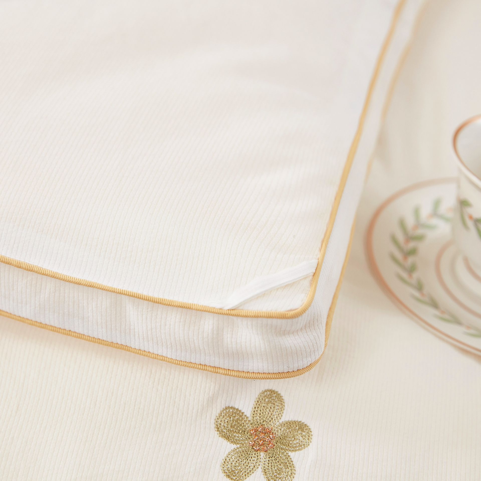 充满青春气息的花瓣,独特的锁边条纹,都使这款被子充满了青春气息。
