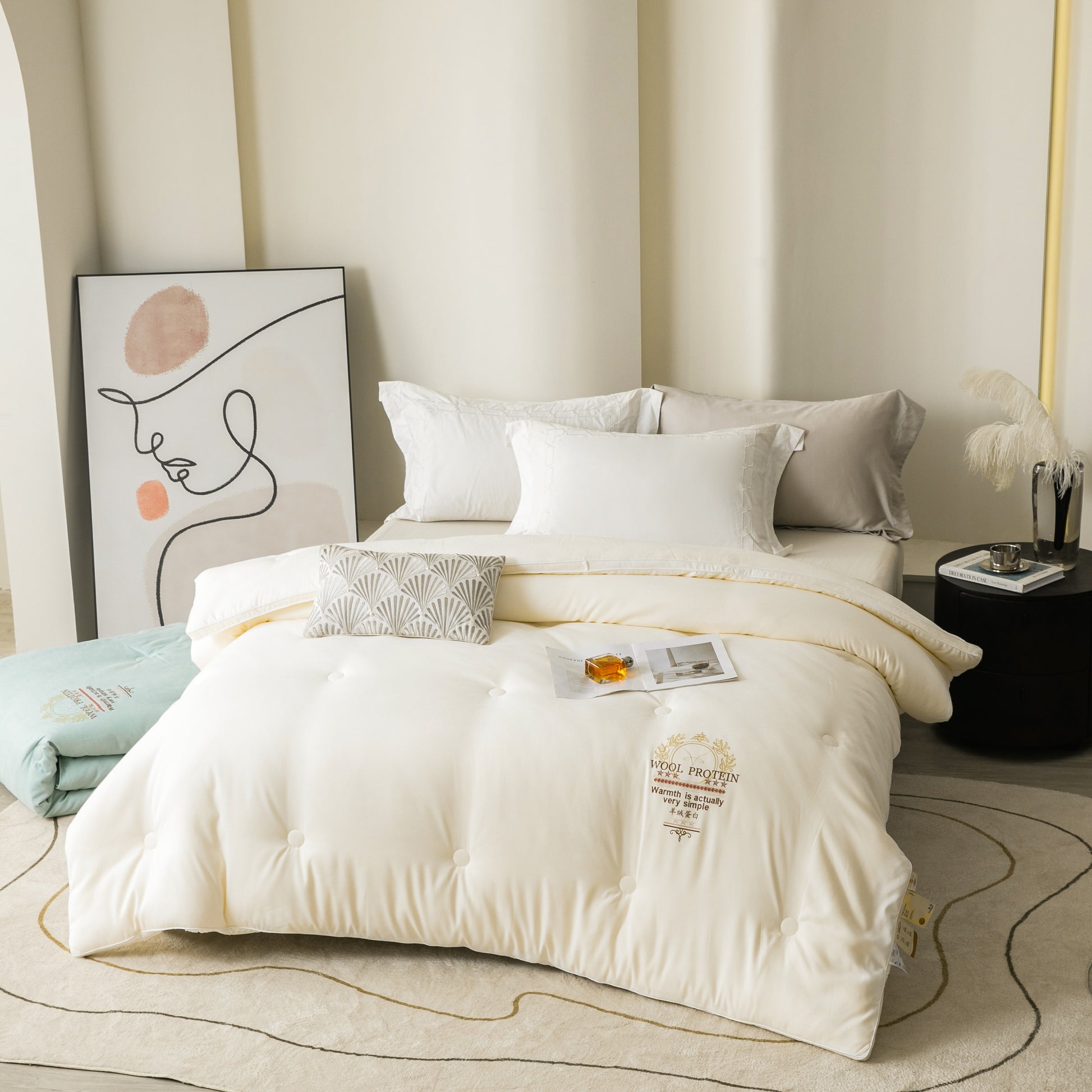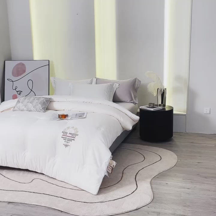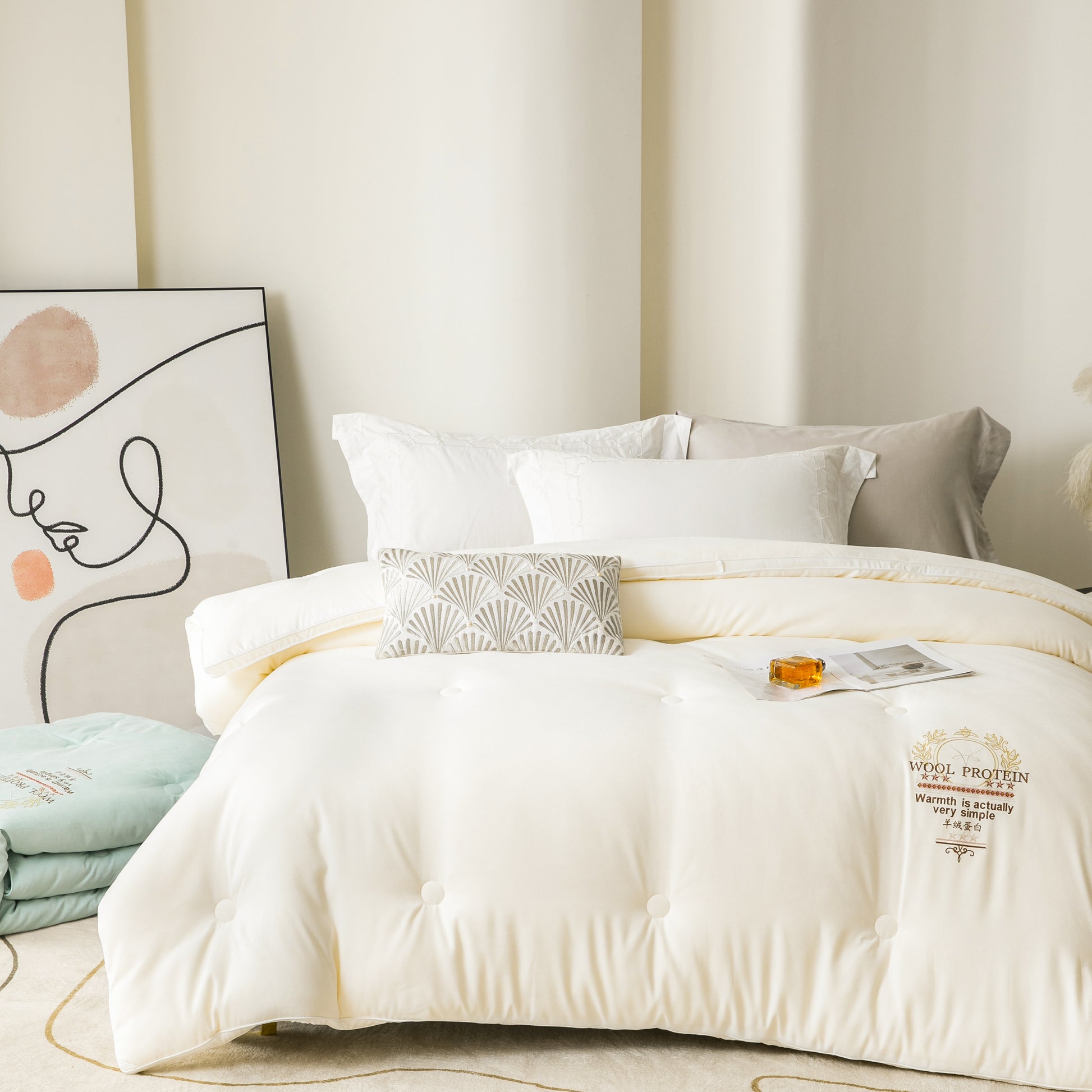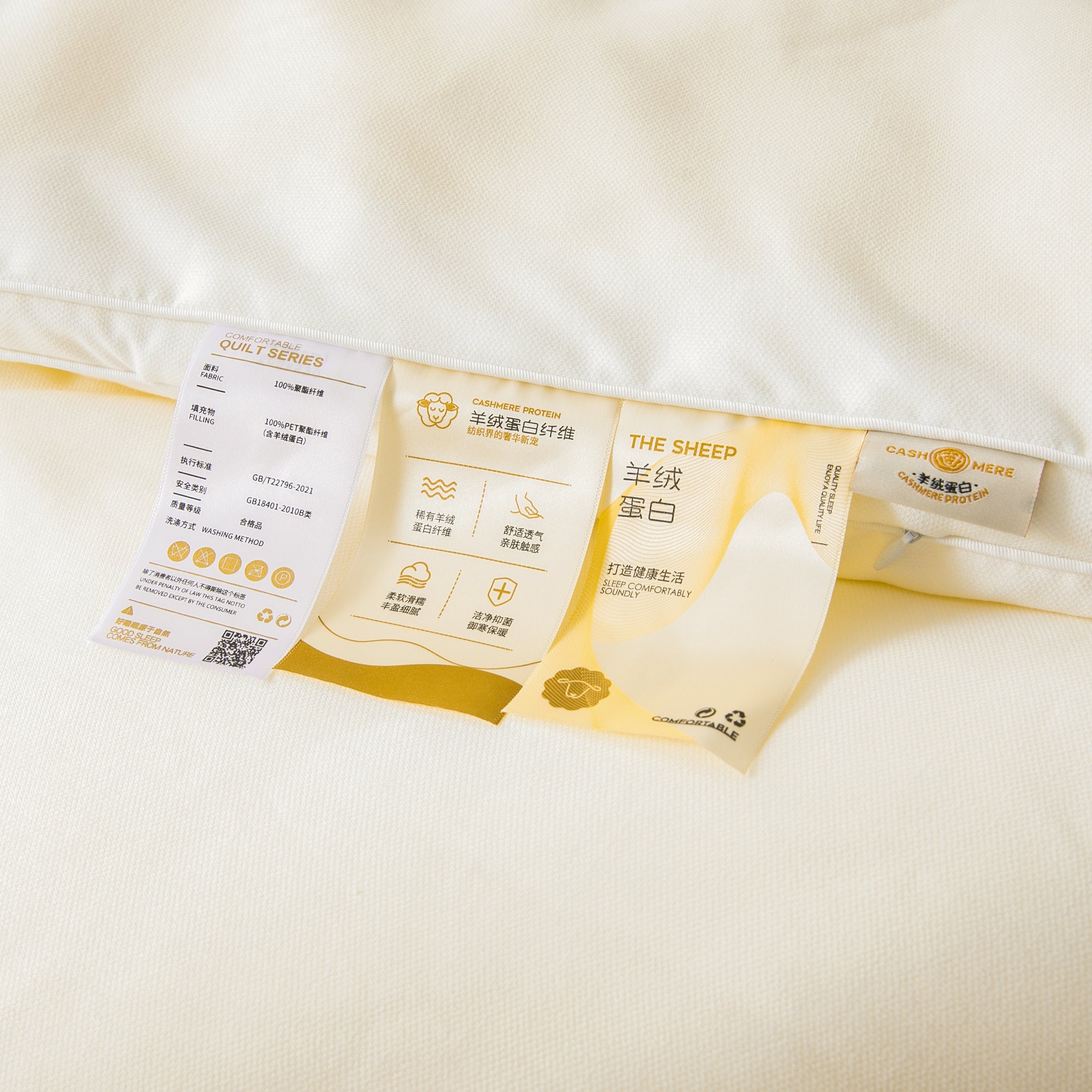 内里填充采用是超细旦PET羊绒蛋白纤维,超细旦的纤维让整条被子的贴身感超棒,即使是9-10斤的重量,依然悬垂贴服,让接触被窝的你能温暖的安睡在寒冷的冬天,羊绒蛋白的保暖不言而喻。